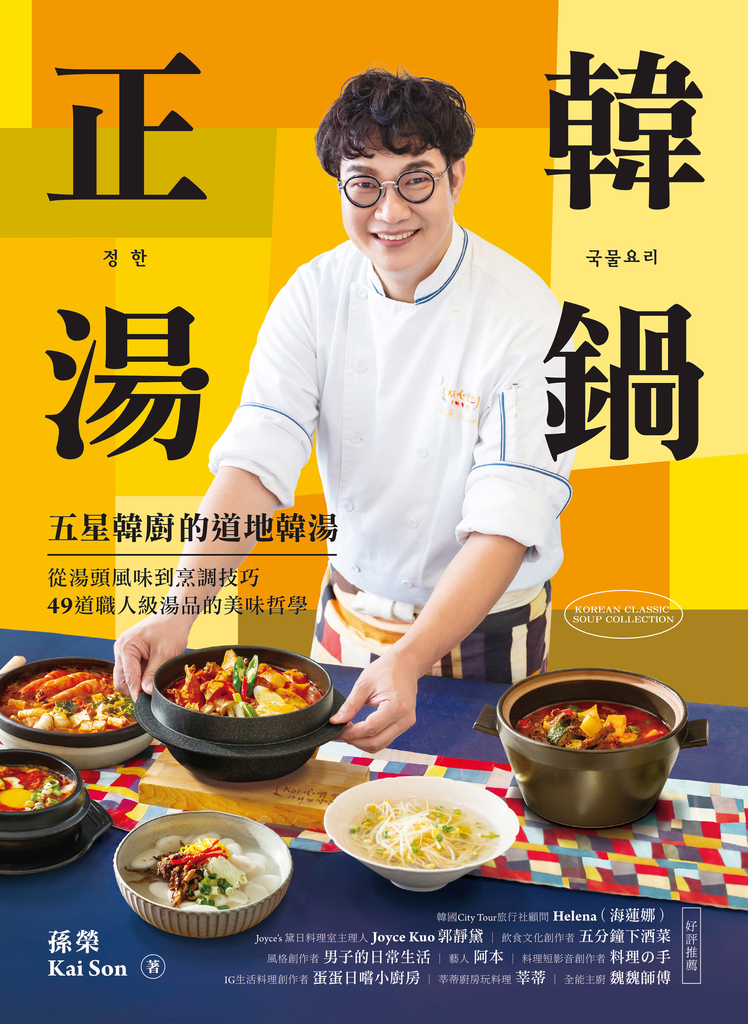 「說到韓式料理,那Kai老師的作品絕對不能錯過!這部新作把湯鍋的層次講得深入淺出,讓你在家也能變身韓式料理高手,真的超推!」──全能主廚|魏魏師傅