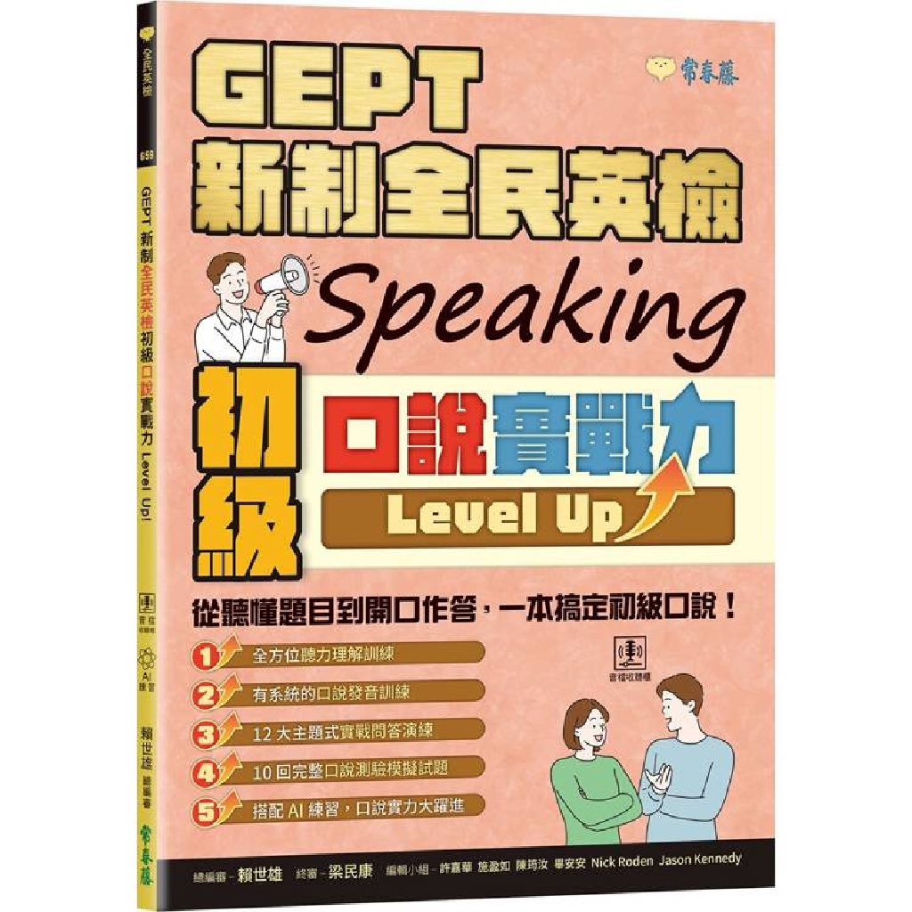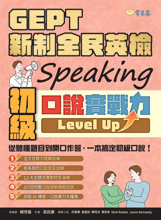 許多考生在GEPT新制全民英檢初級口說測驗中因聽力不足、發音不準、反應慢或缺乏實戰經驗而卡關。賴世雄老師最新力作《GEPT 新制全民英檢初級口說實戰力 Level Up!》針對這些痛點,打造系統化訓練,從聽懂題目到開口作答,一本搞定,助你自信拿高分!