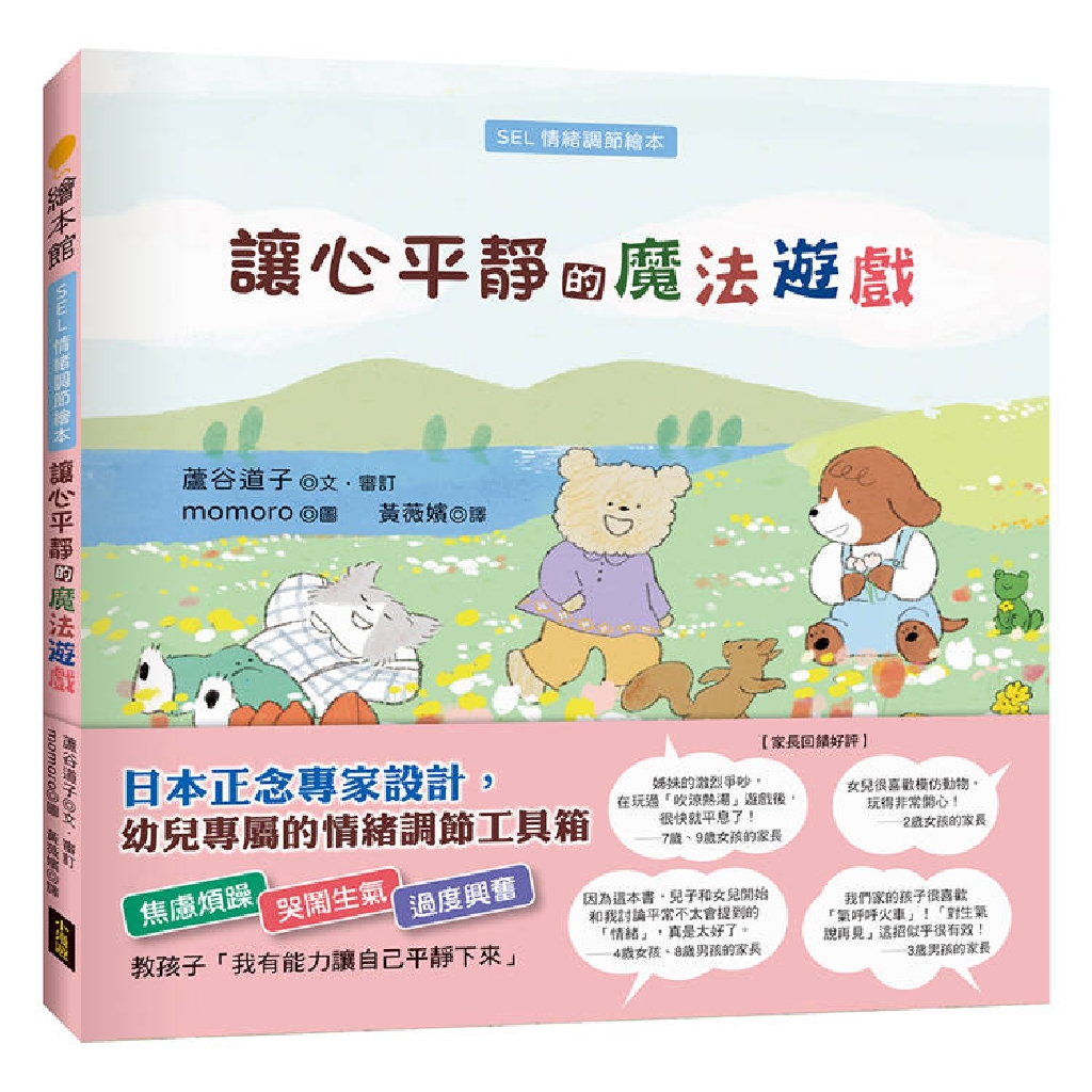 本書由日本正念教育專家、滋賀大學教授蘆谷道子博士撰寫,針對幼兒常見的三種情緒困擾「焦慮煩躁」、「哭鬧生氣」、「過度興奮」,設計9款正念遊戲。每個遊戲都搭配「給家長的建議」,說明遊戲原理、引導技巧和變化玩法,讓家長輕鬆上手,承為孩子最好的情緒教練。