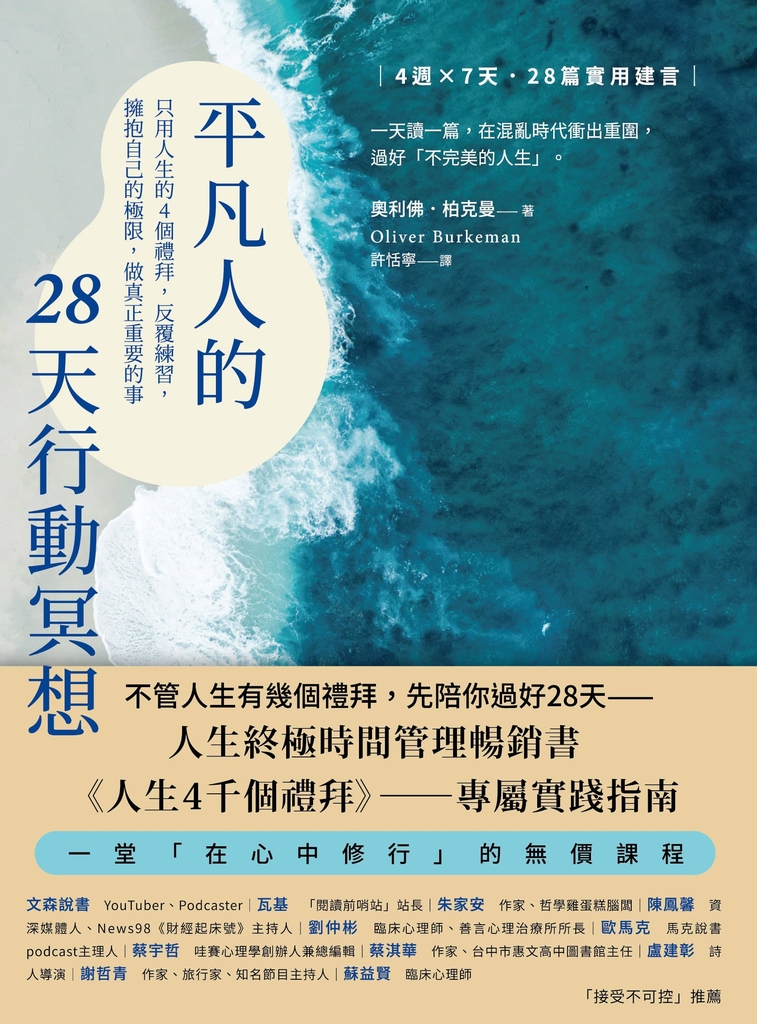 如果你曾因忙碌而失去方向、曾因壓力而忘了呼吸,也曾對生活感到迷惘,這本書將是你重整心靈、歸回本心的導師。只要願意給自己四週,願意耐心練習,你可能會發現:那些你以為無力改變的不安,其實正隱藏著一種你尚未察覺的內在力量。