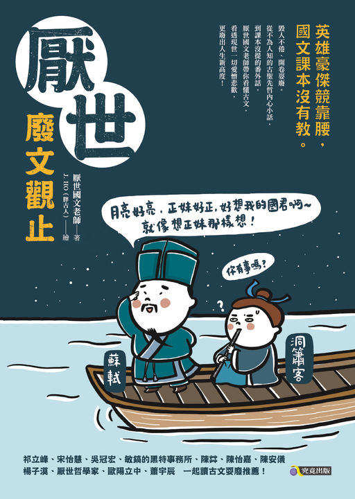 情欲流動的男演員「湯顯祖」、最強的神鬼文豪「蘇東坡」、科技狂與發明狂「諸葛亮」、古代網路戰神「孟子」、絕對是外星人的「莊子」……古物收購,新品上市!