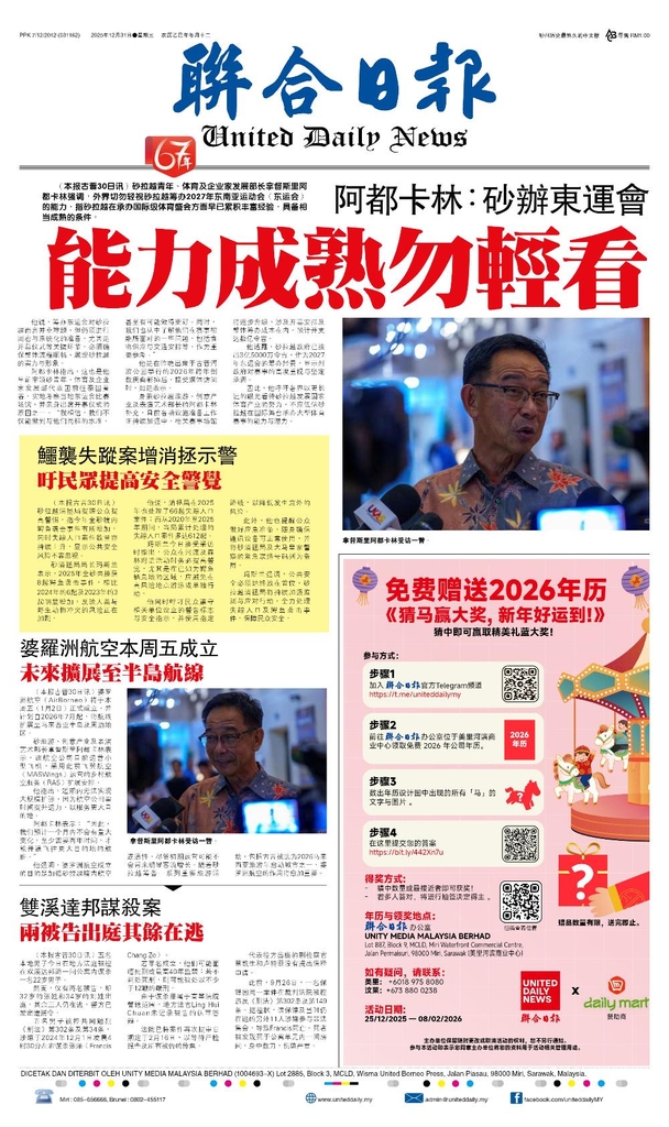 联合日报12月31日2025年
