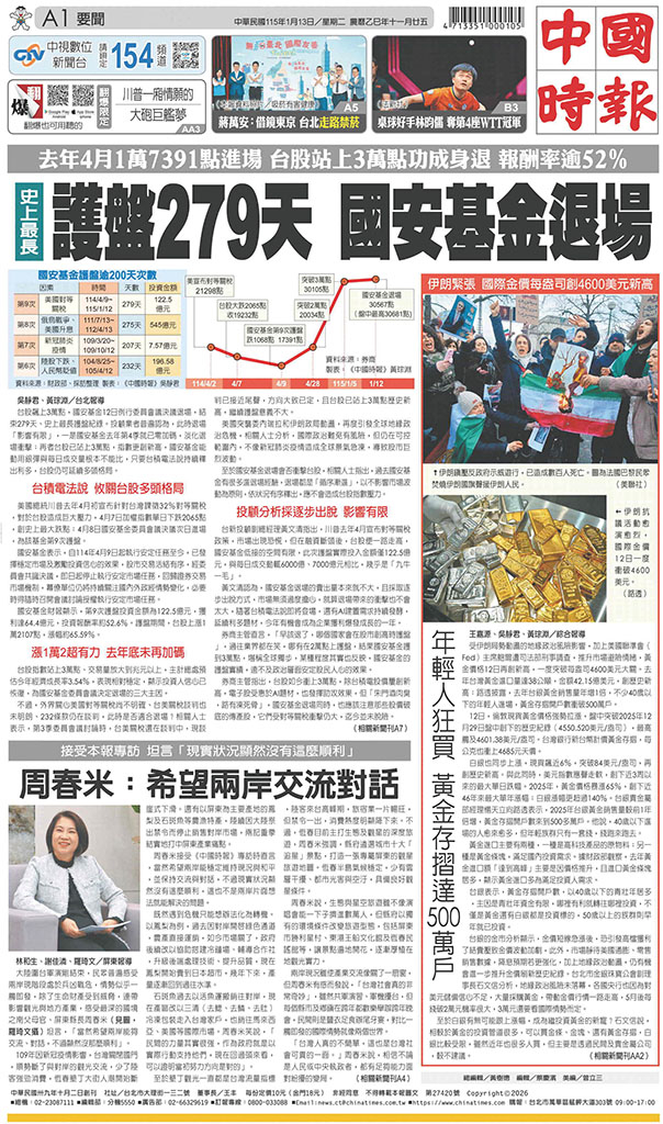 中國時報 2026年1月13日
