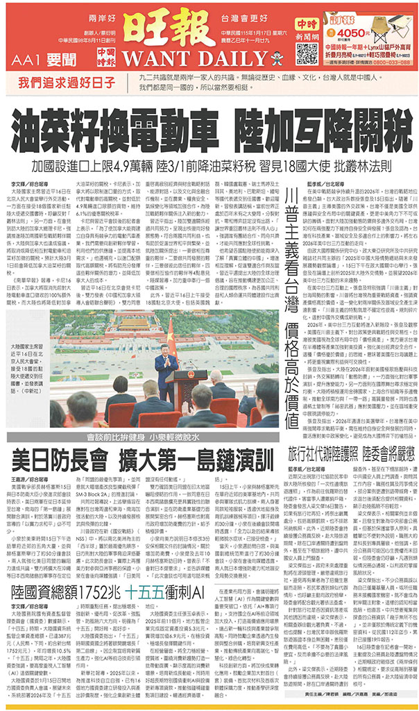旺報 2026年1月17日