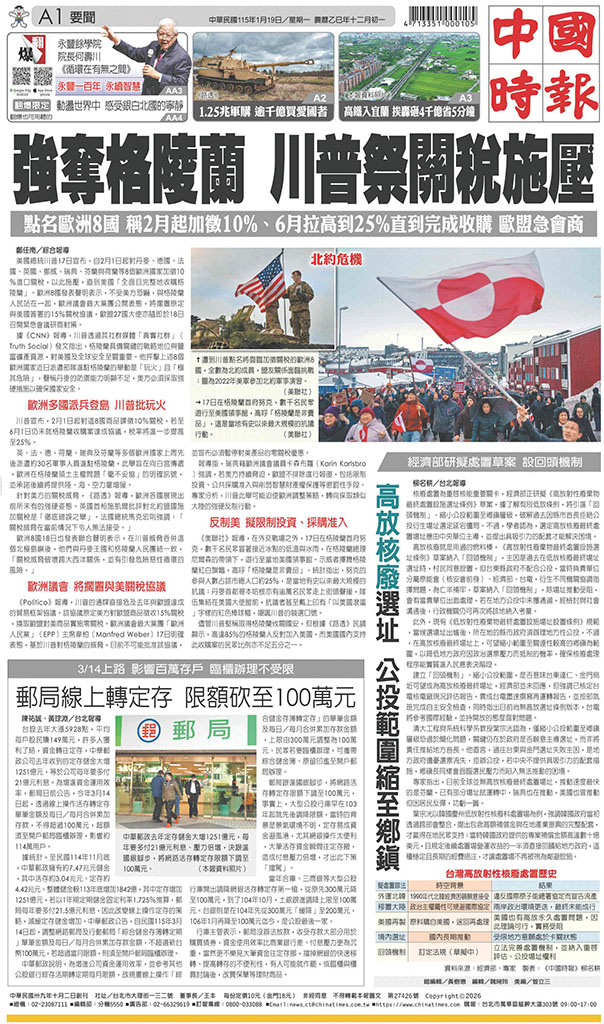 中國時報 2026年1月19日