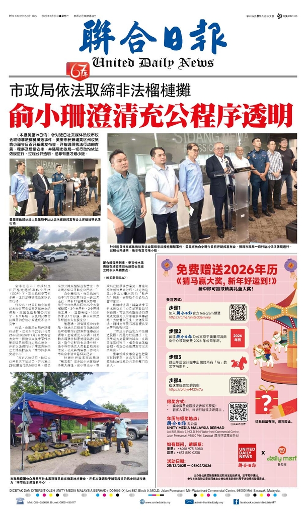 联合日报1月20日2026年