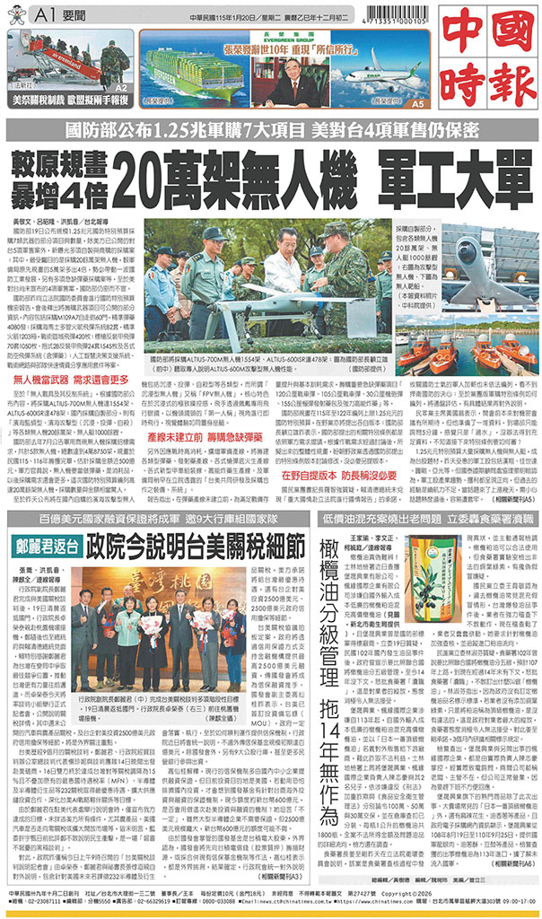 中國時報 2026年1月20日