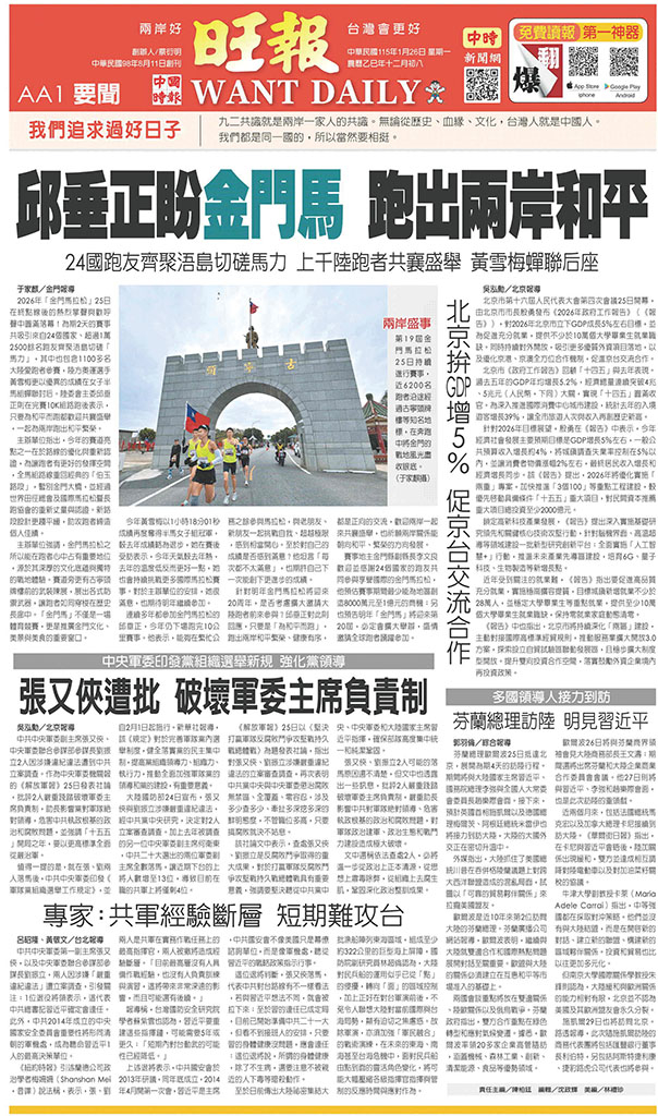 旺報 2026年1月26日