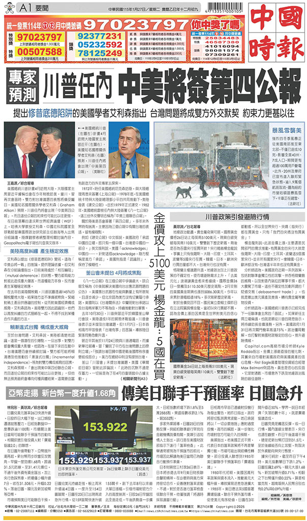 中國時報 2026年1月27日