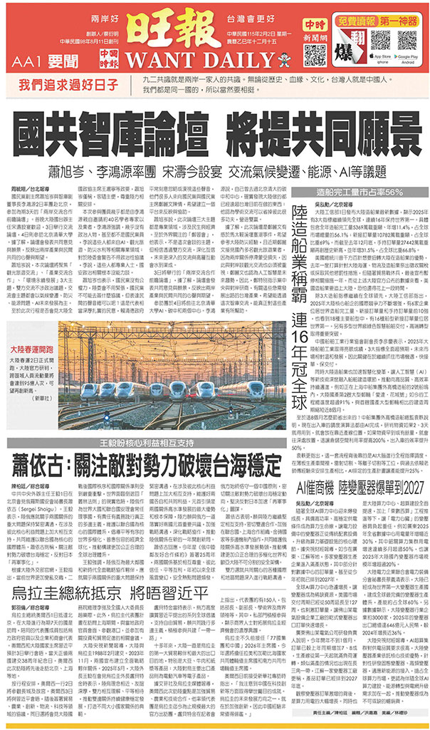 旺報 2026年2月2日