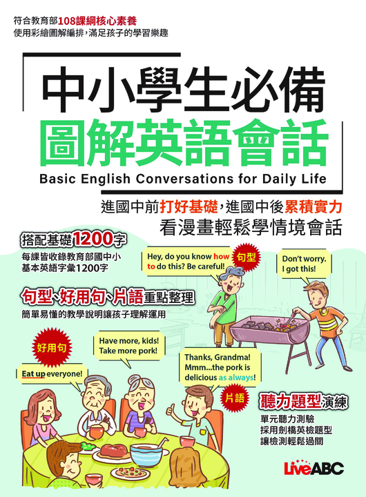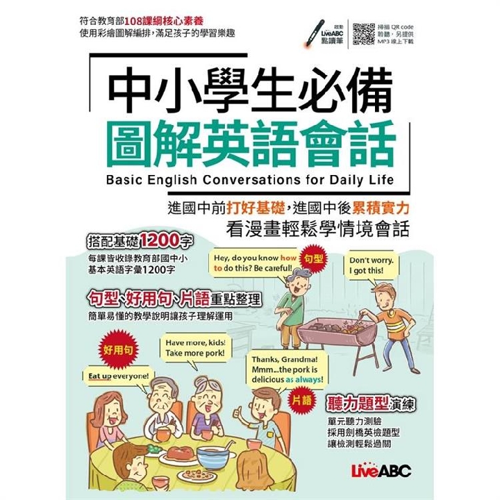 本書附上由專業外籍老師所錄製的朗讀MP3音檔,可立即上網聆聽所有課程的朗讀MP3。望本書豐富的圖片、貼近生活的例句、便利的學習工具能讓孩子快快樂樂地學會基本英語1200字。