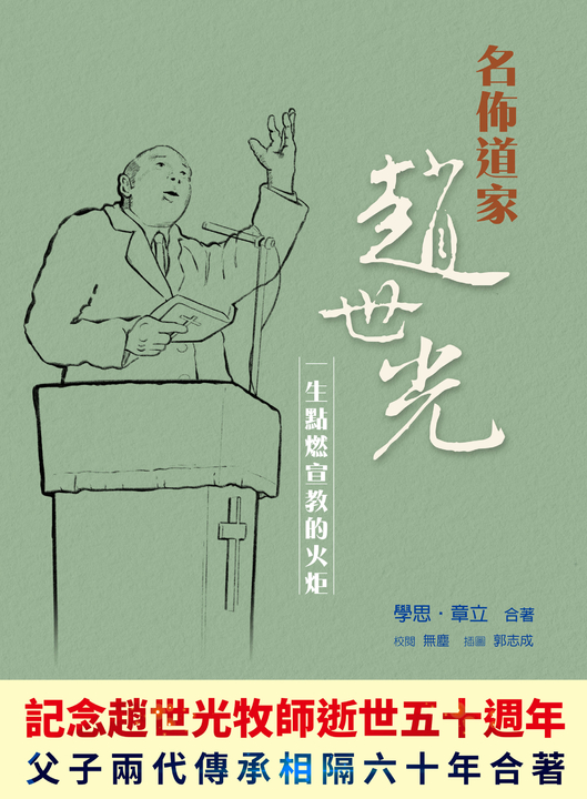 章立與父親學思因著一代神國忠僕趙世光牧師,而串聯起父子兩代間的屬靈傳承。期盼讀者不僅從學思和章立的字裡行間,得以了解名佈道家趙世光牧師寶貴的一生和所建立的聖工,更能將目光聚焦在主耶穌的大使命,一同得著趙世光牧師四方傳揚的國度異象。