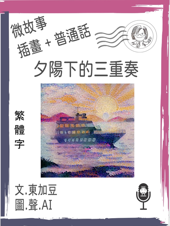 微故事: 夕陽下的三重奏 (繁體字+插畫+廣東話)