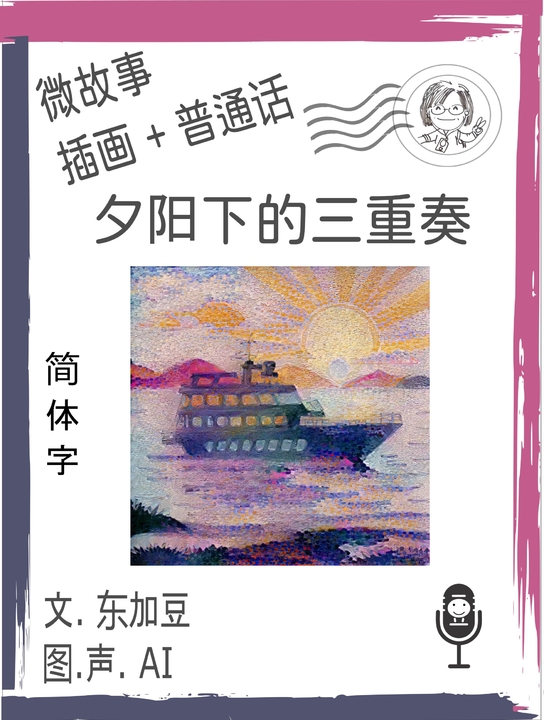 微故事: 夕陽下的三重奏 (繁體字+插畫+普通話)