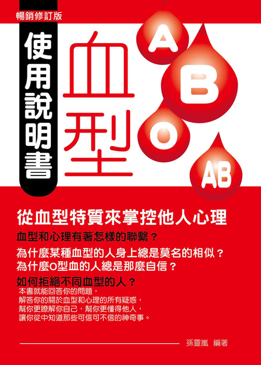 紙本書 血型使用說明書:從血型特質來掌控他人心理(暢銷修訂版) 菁品文化 孫靈嵐 血型使用說明書(暢銷修訂版) 菁品文化 孫靈嵐 eBook NT$210 Printed book NT$270 Preview eBook DRM NT$210 Printed bookOut of stock NT$270