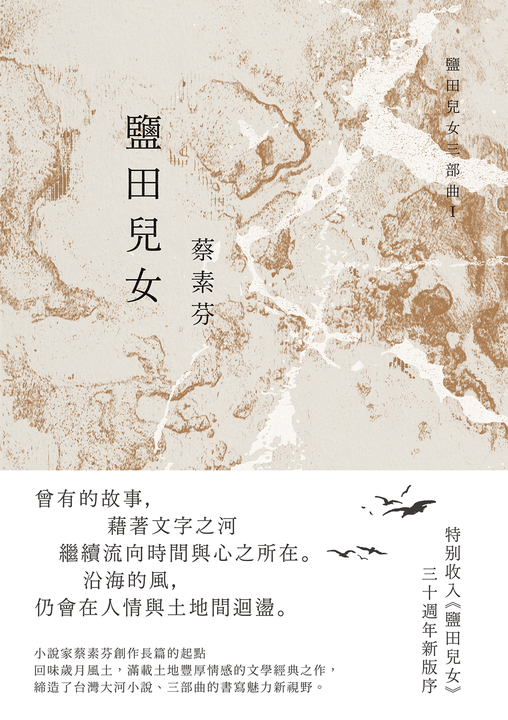 曾有的故事,藉著文字之河繼續流向時間與心之所在 沿海的風,仍會在人情與土地間迴盪。 回味歲月風土,滿載土地豐厚情感的文學經典之作, 締造了台灣大河小說、三部曲的書寫魅力新視野。 ★ 小說家蔡素芬創作長篇的起點,《公共電視台》的開台戲劇,震撼台灣文壇的傳世之作! ★ 特别收入《鹽田兒女》三十週年新版序。 昔為鹽,今為電,在其周邊的,仍是安靜的風日、酷烈的夏陽。人口聚集的地方,有生活的語言和歡喜悲愁的情感,不同代的人講著不同的故事,從過去的故事延伸下來到現在,有情感的發生,土地才產生意義。 ──蔡素芬 《鹽田兒女》是台灣知名小說家蔡素芬榮獲聯合報小說獎長篇小說得獎力作,描寫一對住在南部鹽田村落的青梅竹馬戀情,但女方在父母安排下招贅了一位嗜賭浪蕩的男人,這樁錯誤的婚姻使女方一生命運坎坷。蔡素芬善於說故事,在小說中以台灣早期生活樣貌與鹽業發展為背景,敘述了不同時空背景下女性的堅毅與掙扎,更為時代大眾寫下面對宿命及父權宰制,傳統社會下的悲劇愛情。鹽田那片風日不但是土地的故鄉,也是人情的故鄉。台南七股鄉沿海小村落,這塊「海風也鹹,日頭也毒」的鹹土地上,濃郁的人情以及保守社會下面對愛情的無奈與掙扎,更扣人心弦。 《鹽田兒女》以人性為基點,不只寫男女愛情,也寫親情、鹽田地的生活型態,以及台灣社會的變遷,文字間流動著一方水土的風貌。對土地情感的牽繫,以及對勞動女性形象的內在情感挖掘,揭起矛盾癥結與現實弊病。進而重新認識自己生存的社會,擁抱腳下的水土,呈現台灣女性小說的另一面貌,擴展女性鄉土經驗與階級的關懷。在鮮明的人物性格塑造上,織就了動人的親情之愛、男女之愛、土地之愛。 ▍得獎紀錄 ‧1993年聯合報小說獎長篇小說獎 ‧1994年聯合報‧讀書人最佳書獎 ‧1998年公視開台大戲 ‧2002年第10屆南瀛文學獎文學傑出獎 ‧2004年台灣最愛一百小說大選 ‧2012城市閱讀‧台南之書 ‧2015年第37屆吳三連獎 名家推薦 1993年聯合報小說獎長篇小說獎決審委員評語 作者很會經營,懂得如何巧妙地敘事,心理描寫相當細膩,伏筆的前後呼應安排得很好。感情的控馭,發乎情,止乎常理。台語方言的運用相當清爽傳神。 ──朱炎 人物的塑造、人物與人物之間隱藏的親情、愛情,都非常深刻含蓄而令人感動。文字間流動著炎熱的南台灣海邊鹽田的風貌,抓住了那種陽光、空氣與水分,作者釀造的氣氛非常成功。雖然是小格局的作品,卻很精緻完整。 ──李喬