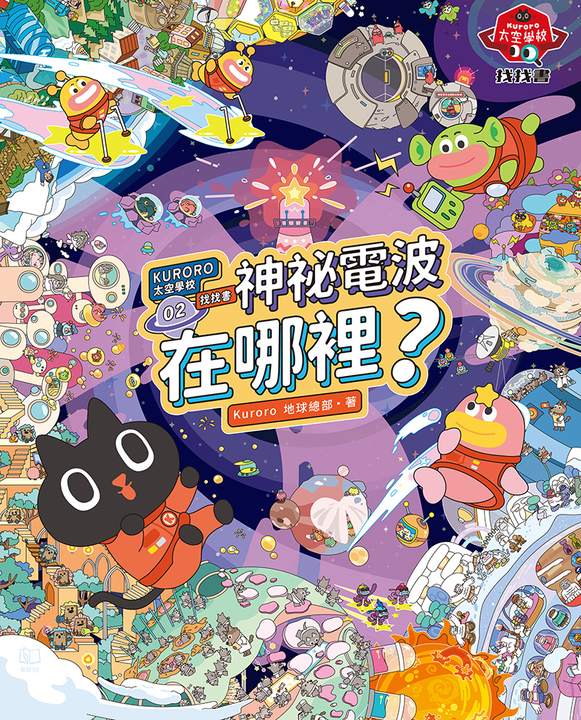 《KURORO太空學校找找書02:神祕電波在哪裡?》是以台灣知名原創角色「 Kuroro 宇宙探查隊」為主角所創作的系列找找書,內容結合益智性、遊戲性與知識性。本集以銀河系等重要宇宙區域為背景,跟著主角從地球出發,穿越我們的太陽系,再前往至今仍無人抵達的古柏帶、歐特雲等地,就像來一趟宇宙旅行,透過腦動大開的各種豐富圖象,以及輕量的天文小知識,在想像力與遊戲中學習各種宇宙知識。