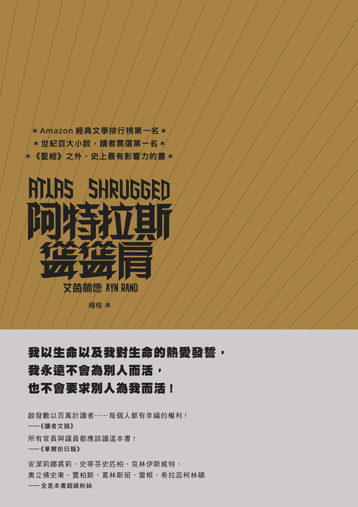 Series 紙本書 阿特拉斯聳聳肩(繁體中文10周年紀念版/3冊合售) 早安財經 艾茵.蘭德Ayn Rand 阿特拉斯聳聳肩(繁體中文10周年紀念版/3冊合售) 早安財經 艾茵.蘭德 eBook NT$688 Printed book NT$702 Preview eBook DRM NT$688 Printed bookOut of stock NT$702