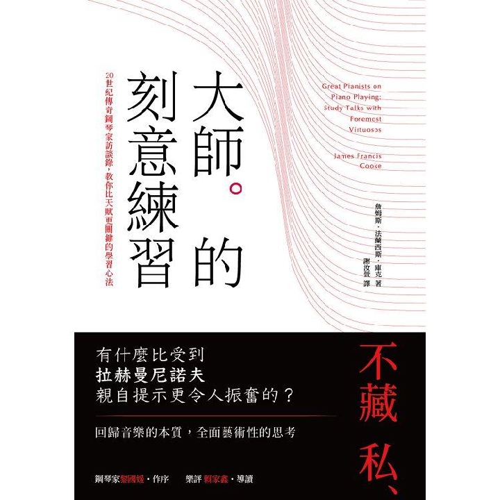 紙本書 大師的刻意練習:20世紀傳奇鋼琴家訪談錄,教你比天賦更關鍵的學習心法 紅桌文化 詹姆斯・法蘭西斯・庫克 大師的刻意練習 紅桌文化 詹姆斯.法蘭西斯.庫克 eBook NT$294 Printed book NT$378 Preview eBook DRM NT$294 Printed book NT$378