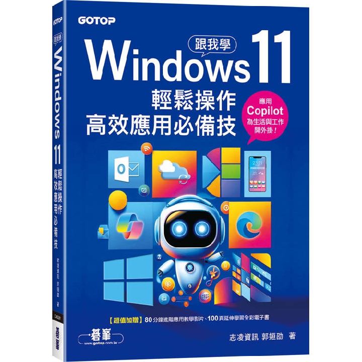 紙本書 跟我學Windows 11輕鬆操作、高效應用必備技(附「Copilot智慧AI助手」與「Win11進階應用」教學影片) 碁峰資訊 志凌資訊 郭姮劭 跟我學Windows 11輕鬆操作、高效應用必備技 碁峰資訊 志凌資訊 郭姮劭 eBook NT$580 Printed book NT$458 Preview eBook DRM NT$580 Printed book NT$458