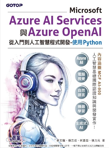 紙本書 Microsoft Azure AI Services與Azure OpenAI從入門到人工智慧程式開發-使用Python(含MCF AI-900國際認證) 碁峰資訊 蔡文龍 張志成 何嘉益 張力元 Microsoft Azure AI Services與Azure OpenAI從入門到人工智慧程式開發-使用Python(含MCF AI-900國際認證) 碁峰資訊 蔡文龍、張志成、何嘉益、張力元 eBook NT$560 Printed book NT$442 Preview eBook DRM NT$560 Printed book NT$442