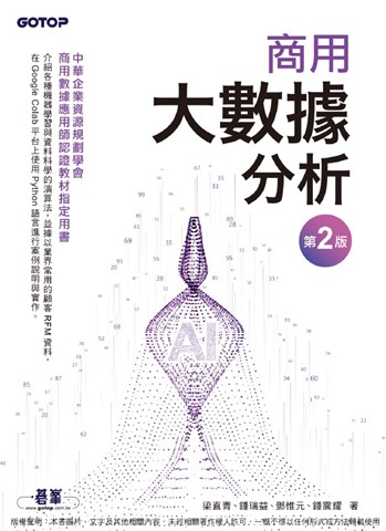 紙本書 商用大數據分析-第二版(商用數據應用師認證教材指定用書) 碁峰資訊 梁直青 鍾瑞益 鄧惟元 鍾震耀 商用大數據分析(第二版) 碁峰資訊 梁直青、鍾瑞益、鄧惟元、鍾震耀 eBook NT$580 Printed book NT$458 Preview eBook DRM NT$580 Printed book NT$458