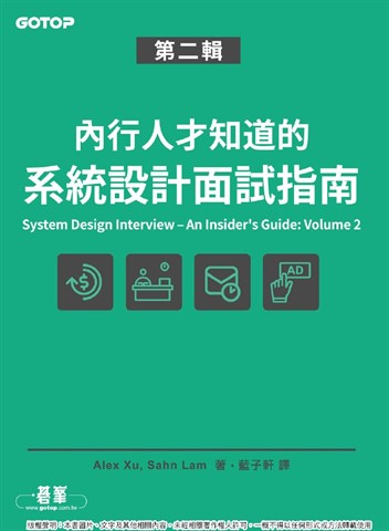 紙本書 內行人才知道的系統設計面試指南 第二輯 碁峰資訊 Alex Xu Sahn Lam 內行人才知道的系統設計面試指南 第二輯 碁峰資訊 Alex Xu- Sahn L eBook NT$820 Printed book NT$647 Preview eBook DRM NT$820 Printed book NT$647