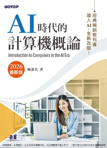 紙本書 AI時代的計算機概論(2026最新版) 碁峰資訊 陳惠貞 AI時代的計算機概論(2026最新版) 碁峰資訊 陳惠貞 eBook NT$620 Printed book NT$489 Preview eBook DRM NT$620 Printed book NT$489