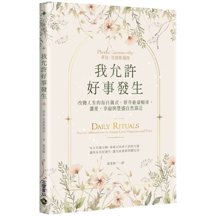 紙本書 我允許好事發生 高寶書版 菲比.佳恩斯渥西 我允許好事發生:改變人生的每日儀式,提升能量頻率,讓愛、幸福與豐盛自然靠近 高寶書版 菲比.佳恩斯渥西 eBook NT$210 Printed book NT$270 Preview eBook DRM NT$210 Printed book NT$270