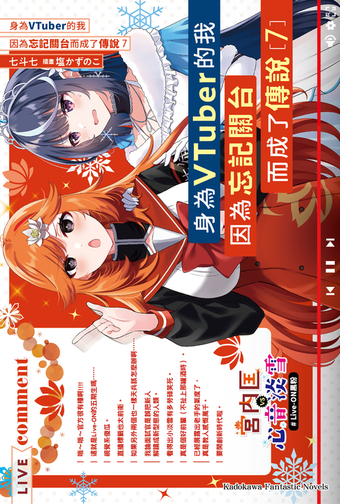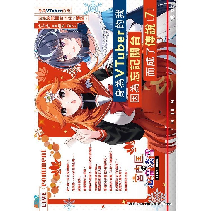 Series 紙本書 【小說】身為VTuber的我因為忘記關台而成了傳說 (7) 台灣角川 七斗 七 身為VTuber的我因為忘記關台而成了傳說(7) 台灣角川 七斗七 eBook NT$165 Printed book NT$174 Preview eBook DRM NT$165 Printed book NT$174