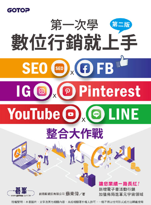 紙本書 第一次學數位行銷就上手-第二版|SEO x FB x IG x Pinterest x YouTube x LINE整合大作戰 碁峰資訊 創意眼資訊有限公司 蘇東偉 第一次學數位行銷就上手第二版|SEO x FB x IG x Pinterest x YouTube x LINE整合大作戰 碁峰資訊 蘇東偉 eBook NT$480 Printed book NT$379 Preview eBook DRM NT$480 Printed book NT$379